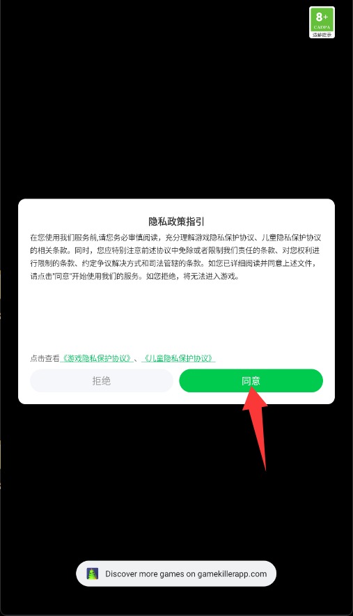 1、启动游戏后,请先仔细阅读并勾选同意用户协议与隐私政策,完成初始设置。