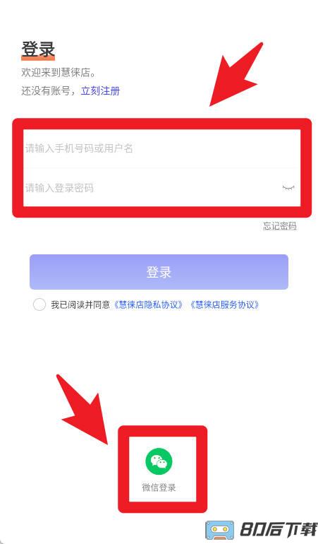 1、在登录页面红框区域输入手机号或用户名及密码即可登录,也可选择微信登录方式,快速进入系统。