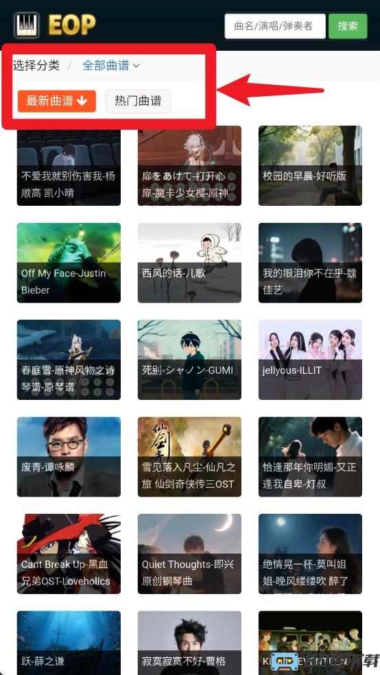 1、在首页点击“最新曲谱”或“热门曲谱”按钮,可快速浏览当前流行或新发布的简谱内容。