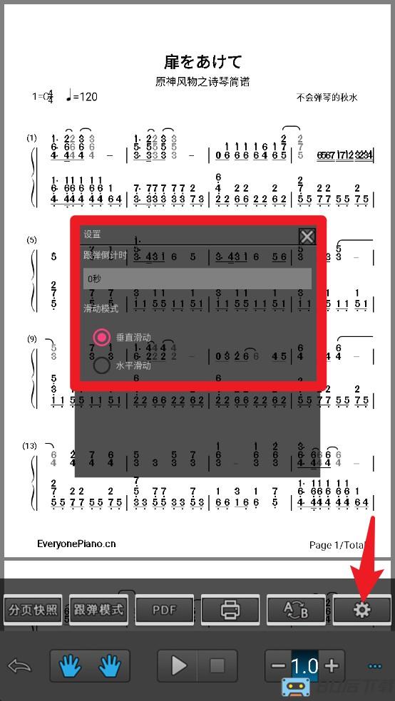 4、在设置中可选择“垂直滑动”或“水平滑动”,调整曲谱滚动方式以适配不同浏览习惯。