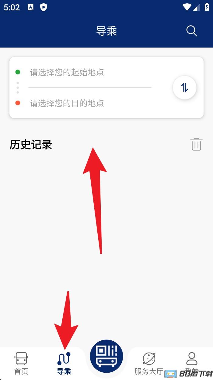 2. 切换到底部“导乘”页面,选择起始地点和目的地,系统将为你规划最佳公交路线。
