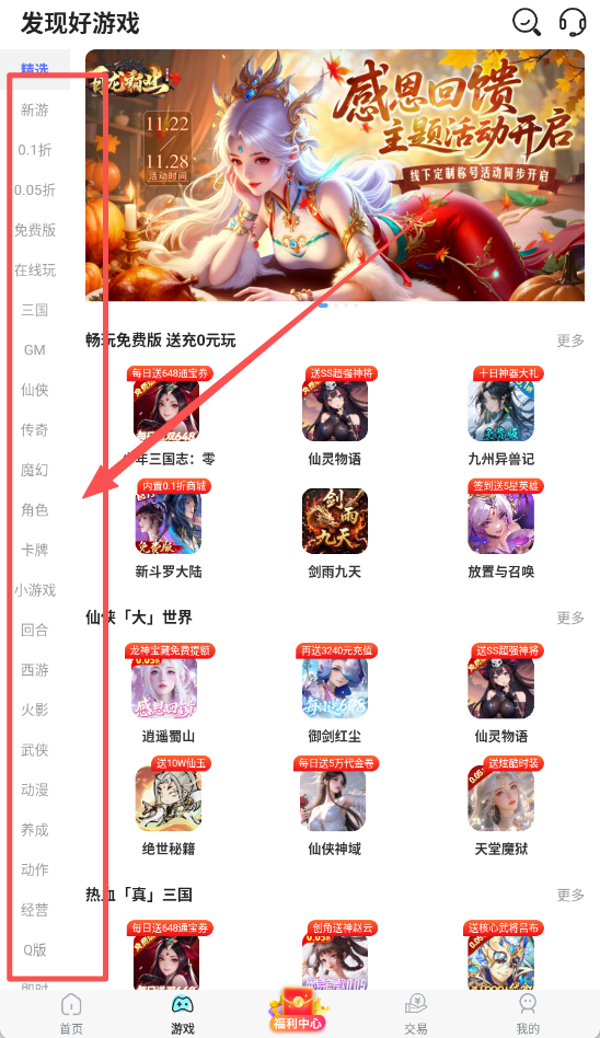 1.免费福利:免费首充、礼包、大额代金券!