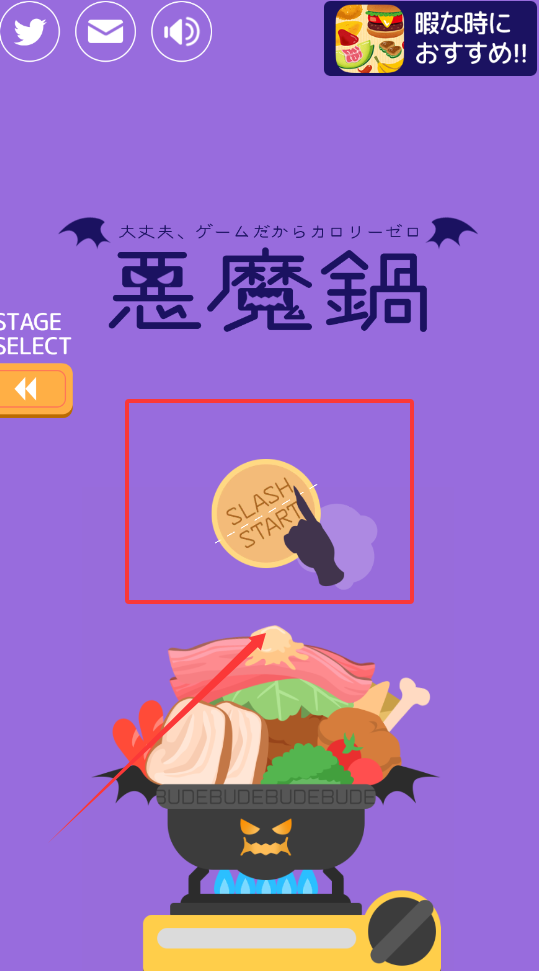 3、在选择关卡时,你会看到像“思魔鍋”这样带有可爱食物主题的关卡名称,选择后点击“スラッシュスタート”或类似的开始按钮。