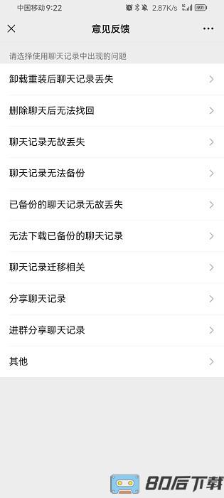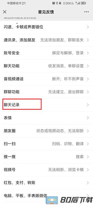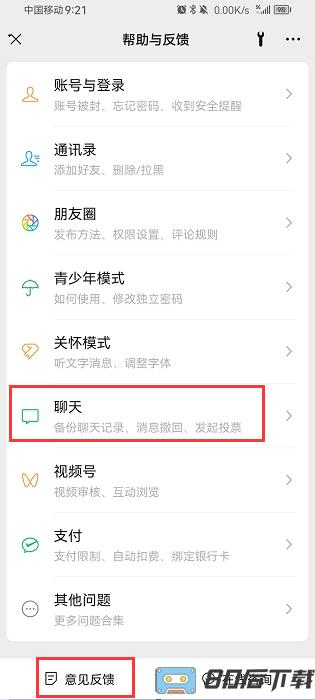 3. 点击下方的“意见反馈”,“聊天”也可以点进去了解一些聊天记录的处理方法。