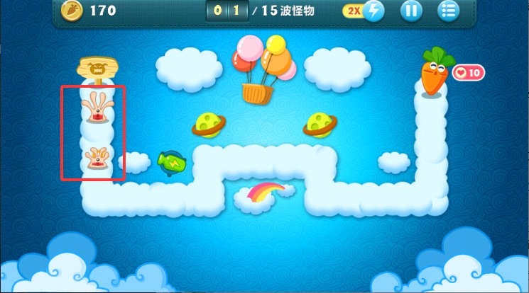 小喽喽:移动速度和血量中等,名副其实的送钱机器;飞行怪:超快的移动速度,较低的血量,要特别小心他们趁乱突围;巨怪:肉盾,移动慢,最可恨的是这货会消耗萝卜两点生命值。