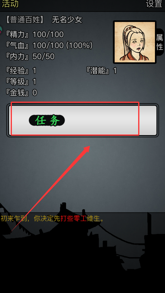 1、首先在创建角色时,要从四类出身中选择其一,比如武学世家、书香门第、商贾之家或孤儿,这会影响你的起点身份。