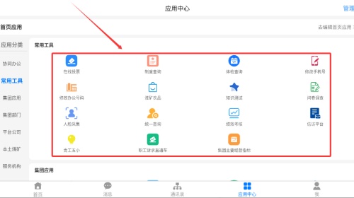 2、随后进入应用中心页面,此处汇集了全部可用功能模块。