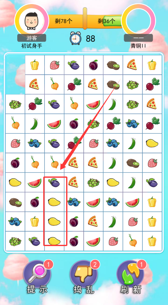 4、留意目标和分数变化,游戏的目标是比对手更快消除所有方块,界面顶部的“剩余XX个”会实时更新。