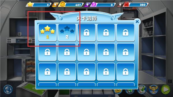 中选择目标关卡,点击确认后即可加载对应的机场烹饪场景。