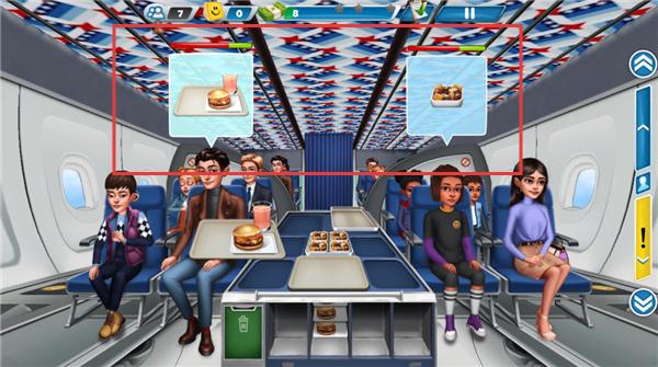 2、采用精美细腻的视觉设计,高度还原机舱内饰与食物造型,搭配明亮色调与流畅动画,营造出沉浸式的高空烹饪视觉氛围。