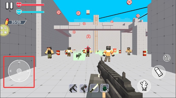 3、通过手指在屏幕左侧控制区域滑动来操纵角色移动方向,向前推动快速奔跑,左右滑动调整行进路线寻找敌人。