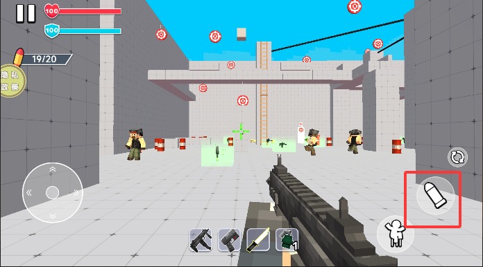 4、发现目标后点击射击按钮发动攻击,武器会自动瞄准并开火,连续点击可提升射速压制对手,注意把握换弹时机。