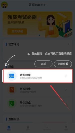 答题100是一个可以导入题库的直播用答题平台,立志于成为快乐学习的打造者。支持上传个人题库,大量免费题库任你选择。