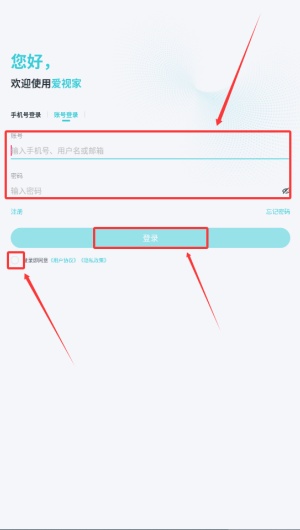 3、选择账号密码登录后,请在输入框内准确填写注册账号及对应的密码。