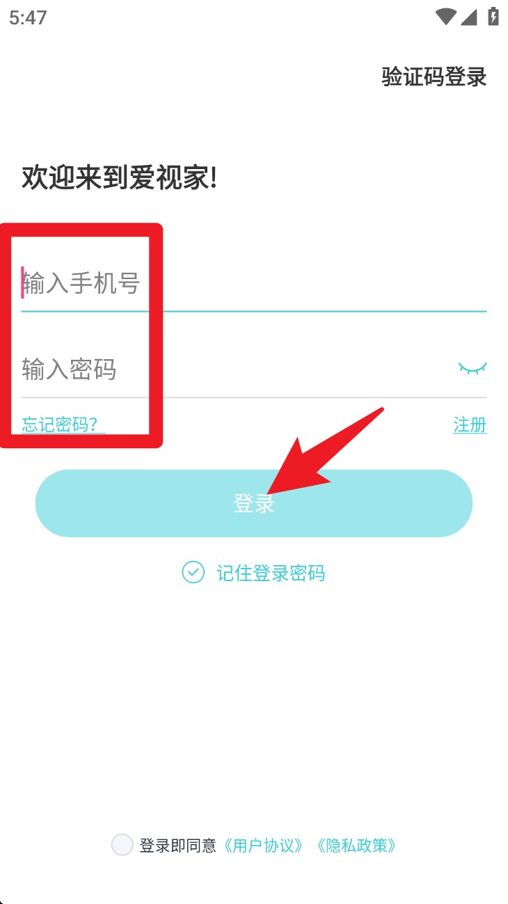 2. 注册成功后返回登录页,输入手机号与密码点击“登录”,即可进入主界面。
