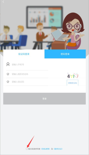 3、在登录页面勾选同意用户协议与隐私政策条款,进入身份验证步骤。