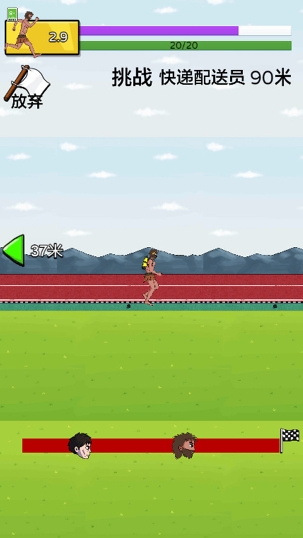1、进入游戏后,你会看到一个简单的马拉松跑道界面。一开始你需要快速点击屏幕中央的“跑步”区域。