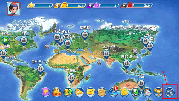1、启动游戏后首先点击界面右下角的齿轮图标,进入系统设置与功能管理菜单。