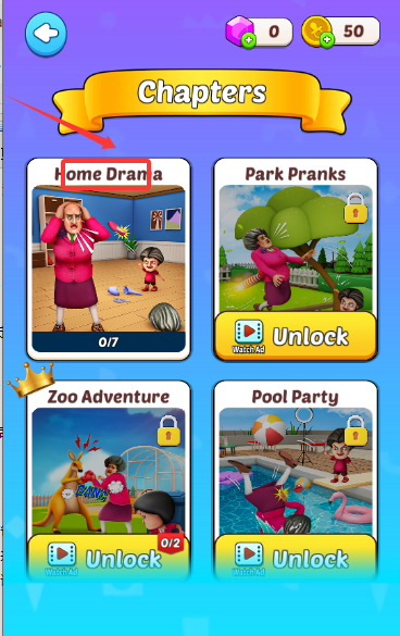 1、进入游戏关卡后首先需观察场景布局,明确恶作剧的最终目标人物与可互动的环境物品,例如散落的臭袜子或待插花的花瓶,通过滑动屏幕控制角色移动至这些道具旁边。