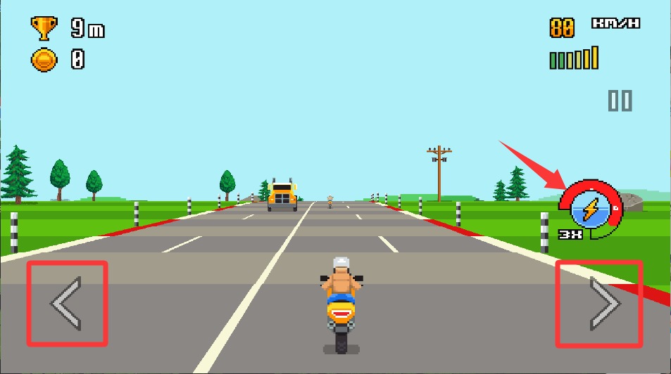 像素摩托车怀旧公路赛,走的是经典8-bit像素风,玩起来有点当年《暴力摩托》那味儿。操作没啥难度,就按屏幕左右箭头控制方向,关键看手速和反应,跑得越远越牛。跟老游戏比,这代少了点打斗,但多了不少新地图、新车和道具,路上还能捡金币攒着换好东西。想玩得爽就得多练,金币攒够了才能解锁更酷的装备。