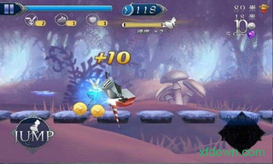 游戏的主题是奔跑,所以在游戏里需要尽可能的让爱丽丝跑地更快更远。奔跑同时玩家可以收集金币、银币或宝石,每收集到3颗以上的宝石就会获得一定的奖励。收集到的硬币和珠宝将是游戏中的交换点,玩家可以使用购买技能、服装等,让爱丽丝更漂亮更敏捷;或是购买新背景、拍照姿势等,充分享受游戏的欢乐并与朋友们分享。
