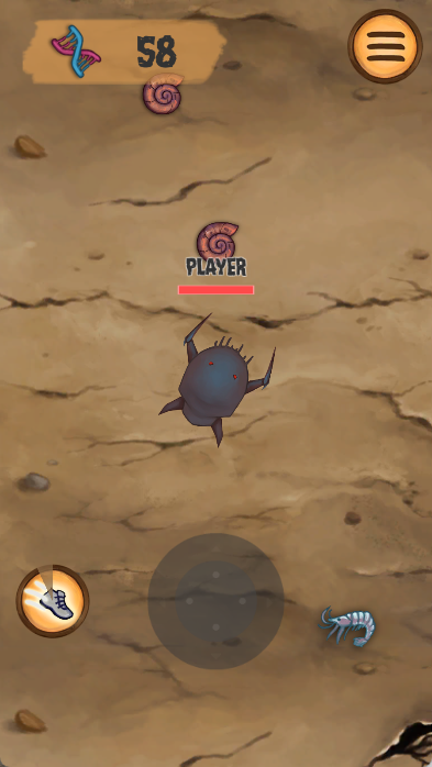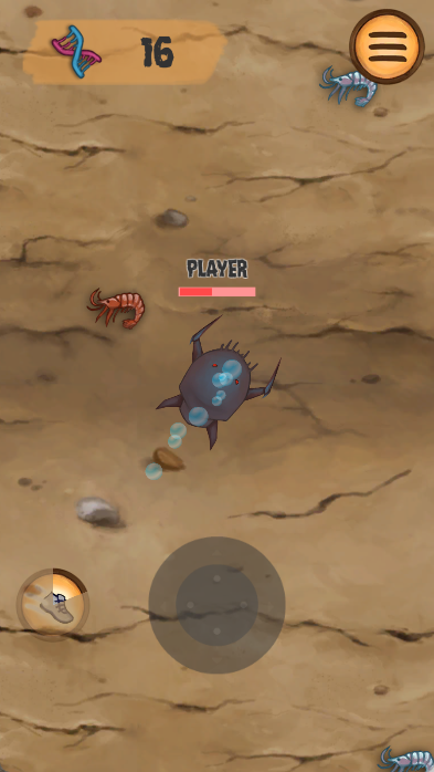 2、进入场景后,通过虚拟摇杆控制角色移动,靠近可吞噬的物资或小型生物。