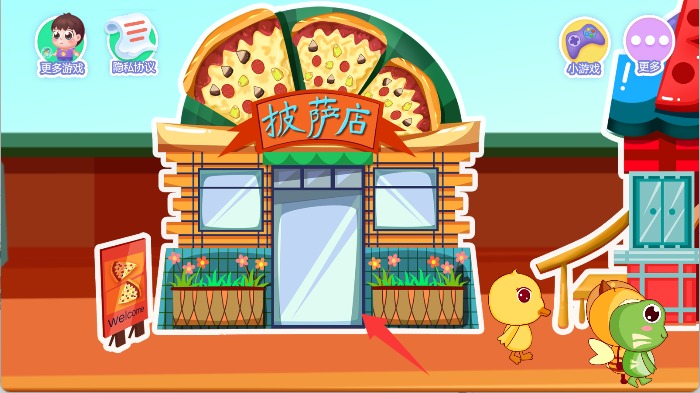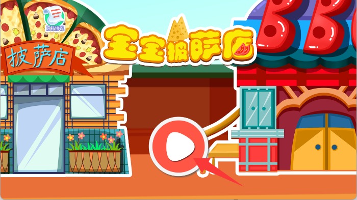 4、在店铺选择中点击“宝宝披萨店”选项,加载场景后即可开始接单、制作与送餐。