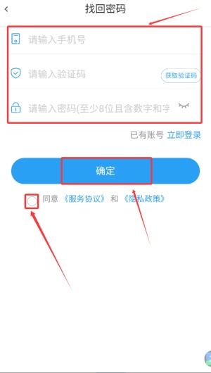 4、若忘记密码,请点击“找回密码”,按指引验证身份后重新设置密码。