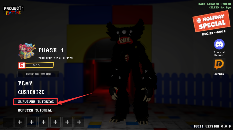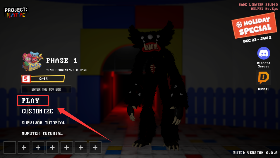 1、游戏开局需在PLAY界面选择幸存者或怪物阵营,幸存者需利用可伸缩的机械手臂破解地图中的电路谜题与抓取道具,通过合作完成分散各处的迷你游戏来收集零件。