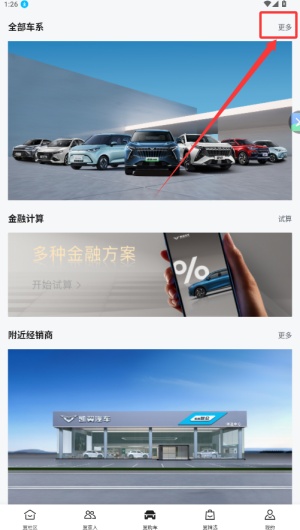 3、进入购车页面后,点击“更多车型”或“查看全部”按钮浏览完整车系。