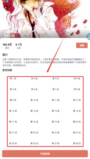 3、进入漫画详情页后,从章节列表中选取您想阅读的具体集数或回目。