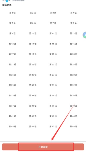 4、选定章节后,点击“开始阅读”按钮即可进入阅读器观看该章节内容。