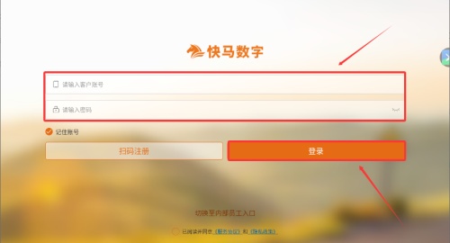 2、选择“客户入口”,在登录框中输入您的账号及密码,点击登录。