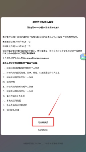 1、初次使用需阅读用户协议与隐私政策,确认无误后点击同意并接受按钮进入。