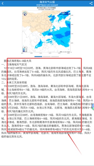 3、成功进入该栏目后,即可浏览最新的天气公报详细内容。