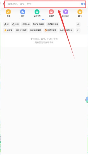 4、使用顶部的放大镜搜索框,可以快速查找并定位目的地。