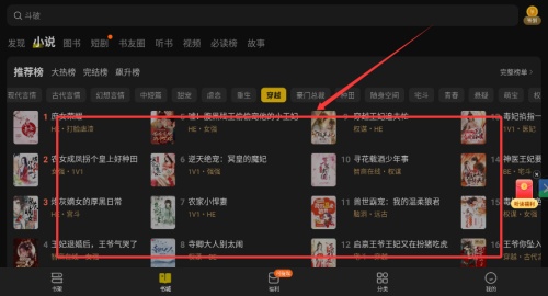 3、在推荐列表中,点击选择您个人感兴趣的具体小说。