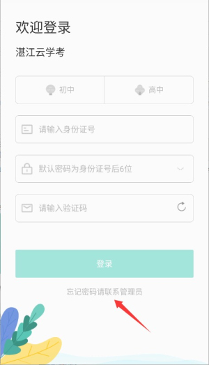 步骤三:使用另一台手机打开“湛江云考试”APP,(初中或高中),输入身份证号码、密码进行登录,选择“进入监考”