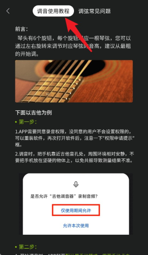 2.点击调音使用教程,查看图文并茂的操作说明,帮助你快速了解调音步骤与注意事项。