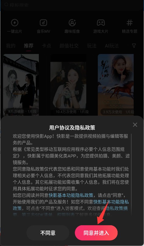 1、打开应用后,请仔细阅读并点击“同意”勾选隐私政策,完成初始授权设置。