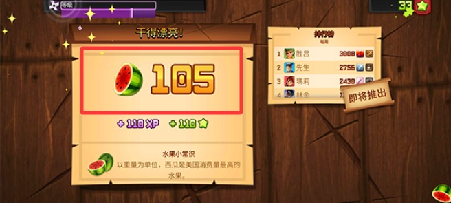 4、每局游戏有时间限制或生命值设定,结束后会统计你切开的水果数量。根据最终得分,系统会给出相应的评级或奖励。