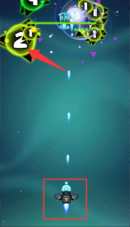 游戏下边最左侧的图标就是你的主武器,主武器有两种效果,一种是火力,一种是射速,这个也是优先保证升级的,火力越大,射速越高,你的生存能力就越强,消灭病毒就越给力。