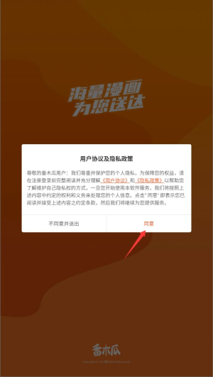 1、首次启动应用时,系统会显示用户协议和隐私政策,阅读后点击同意按钮进入主界面。