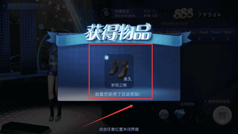 4、领取时界面会弹出恭喜提示,你随便点一下屏幕就能关掉窗口,回到游戏继续下一关。