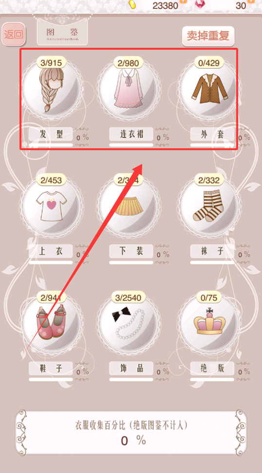 3、你能清楚知道哪些类型缺少物品,方便有针对性地去购买或者完成关卡来补充呢。