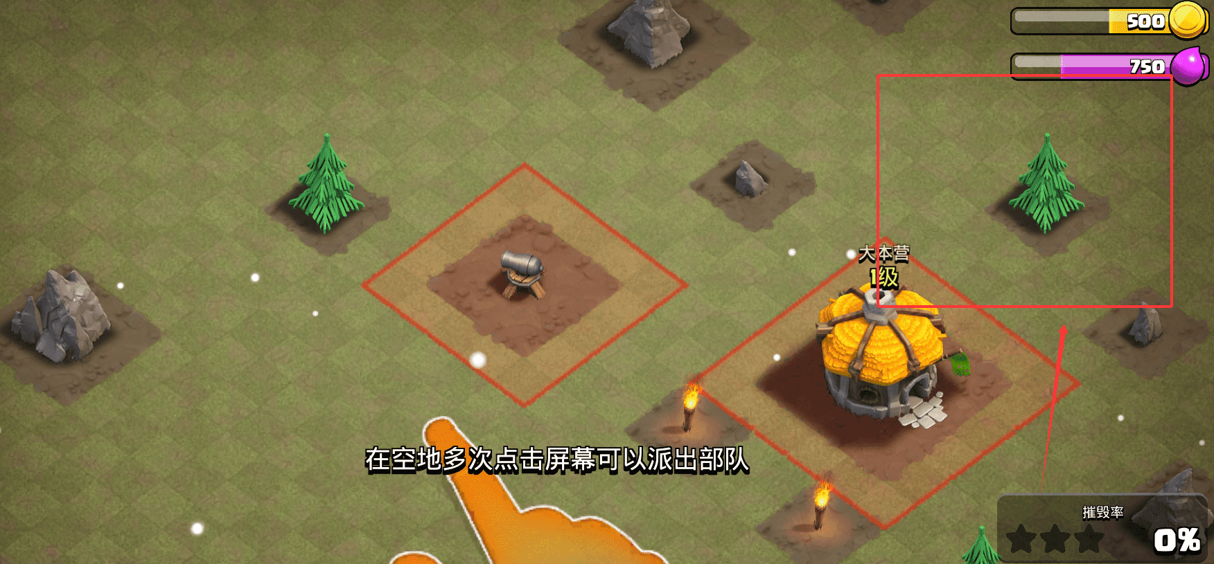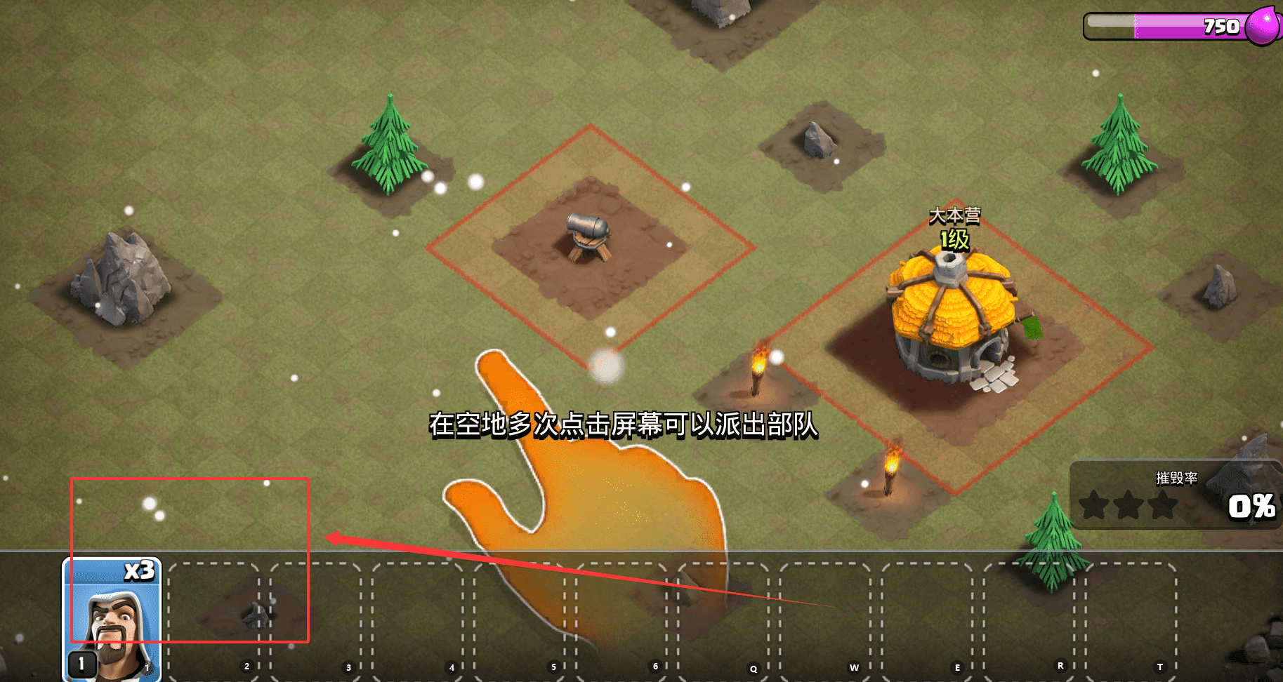 1、先点击空地确认出兵位置,可以多次点击同一个地方来增加部队数量哦。