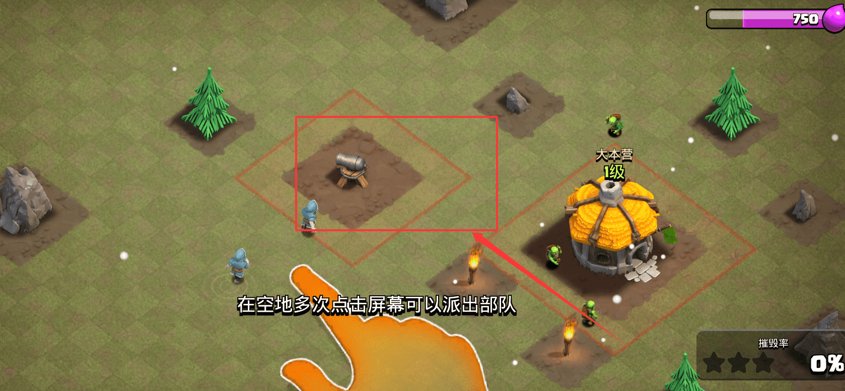 1、在空地多次点击屏幕可以派出部队、这是出兵的基本操作哦。玩家只需在战场空地上连续点击。