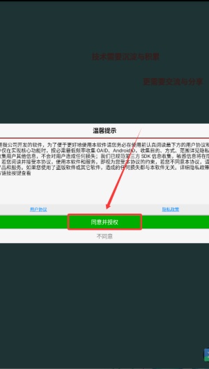 1、当您首次启动该软件时,请务必点击同意用户协议以进入主界面。