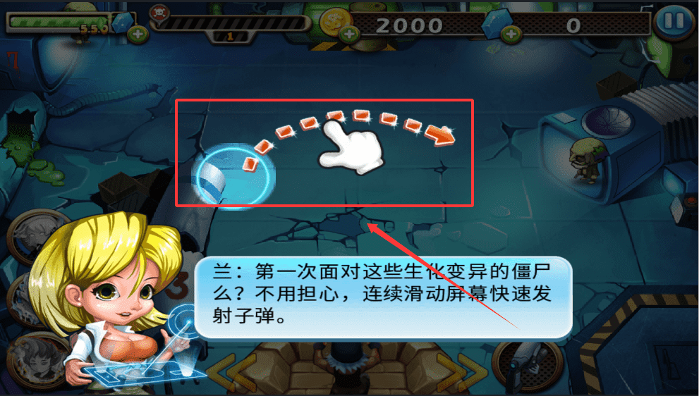 1、游戏的基本攻击方式是连续滑动屏幕来快速发射子弹,你可以多练习几次,熟悉这个操作节奏就好了。