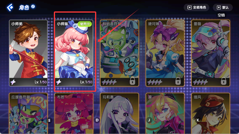 3、游戏提供了多个角色可选。点击主界面上方的“角色”标签,就能进入角色库。想换角色的话,直接点击另一个已解锁角色的卡片就行。